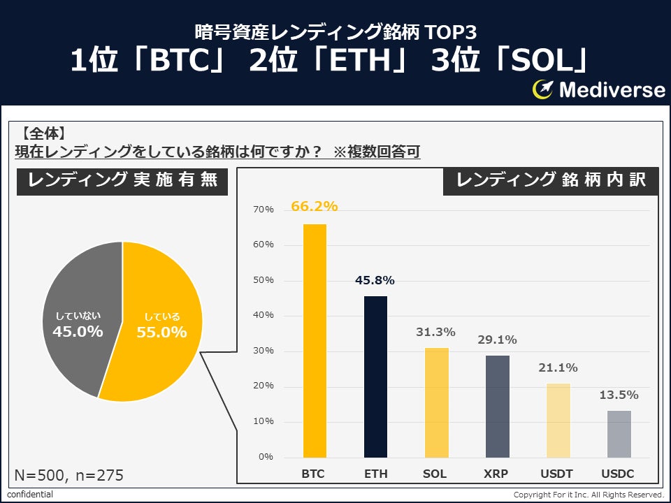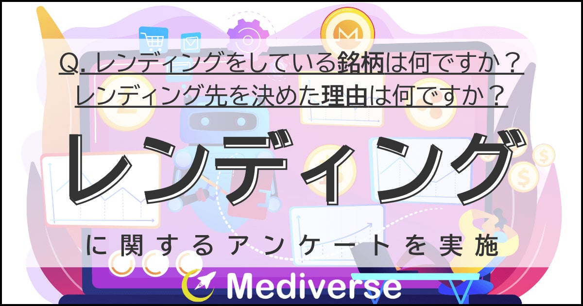 株式会社フォーイットが運営するWeb3メディア「Mediverse(メディバース)」は、『暗号資産(仮想通貨)におけるレンディング利用実態に関するアンケート』を独自で行いましたので、その調査結果をお知らせいたします。