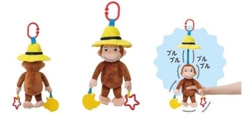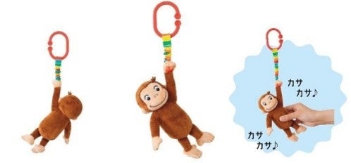 ひっぱると、ジョージがぴょんぴょん跳ねて楽しい!ジョージを握ると赤ちゃんの大好きなカサカサ音も楽しめます。
