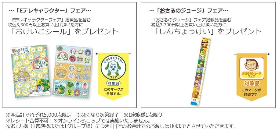 アカチャンホンポではこれからの季節に大活躍のお洋服や、傘やリュックなどのおでかけに便利なグッズをはじめ雑貨品、おもちゃまで、お子さまに人気のNHKキャラクターが大集合。また「Eテレキャラクター」のシールや「おさるのジョージ」の身長計がもらえるプレゼント企画も開催します。お気に入りのキャラクターと一緒に遊んで、着替えて、お出かけして素敵な秋をお過ごしください。