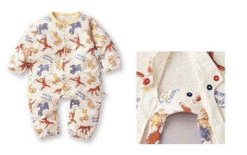 どこかに「あーぷん」が隠れているたのしいデザイン!肩はスナップボタン仕様で脱ぎ着もラクラク。