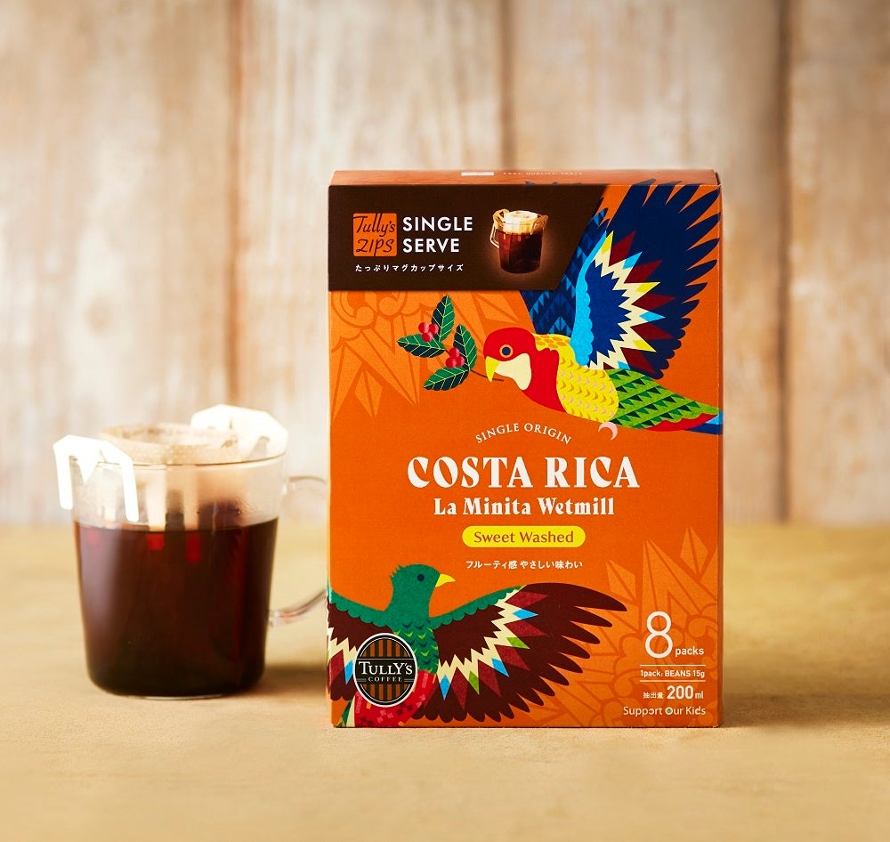 また、上記の味わいを手軽にお楽しみいただける「タリーズジップス シングルサーブ コスタリカ ラ ミニータ ウェットミル スイートウォッシュド」もご用意いたしました。ご自宅だけでなく、お仕事中やお出かけ先など、様々なシーンで本格的なコスタリカコーヒーをお楽しみください。