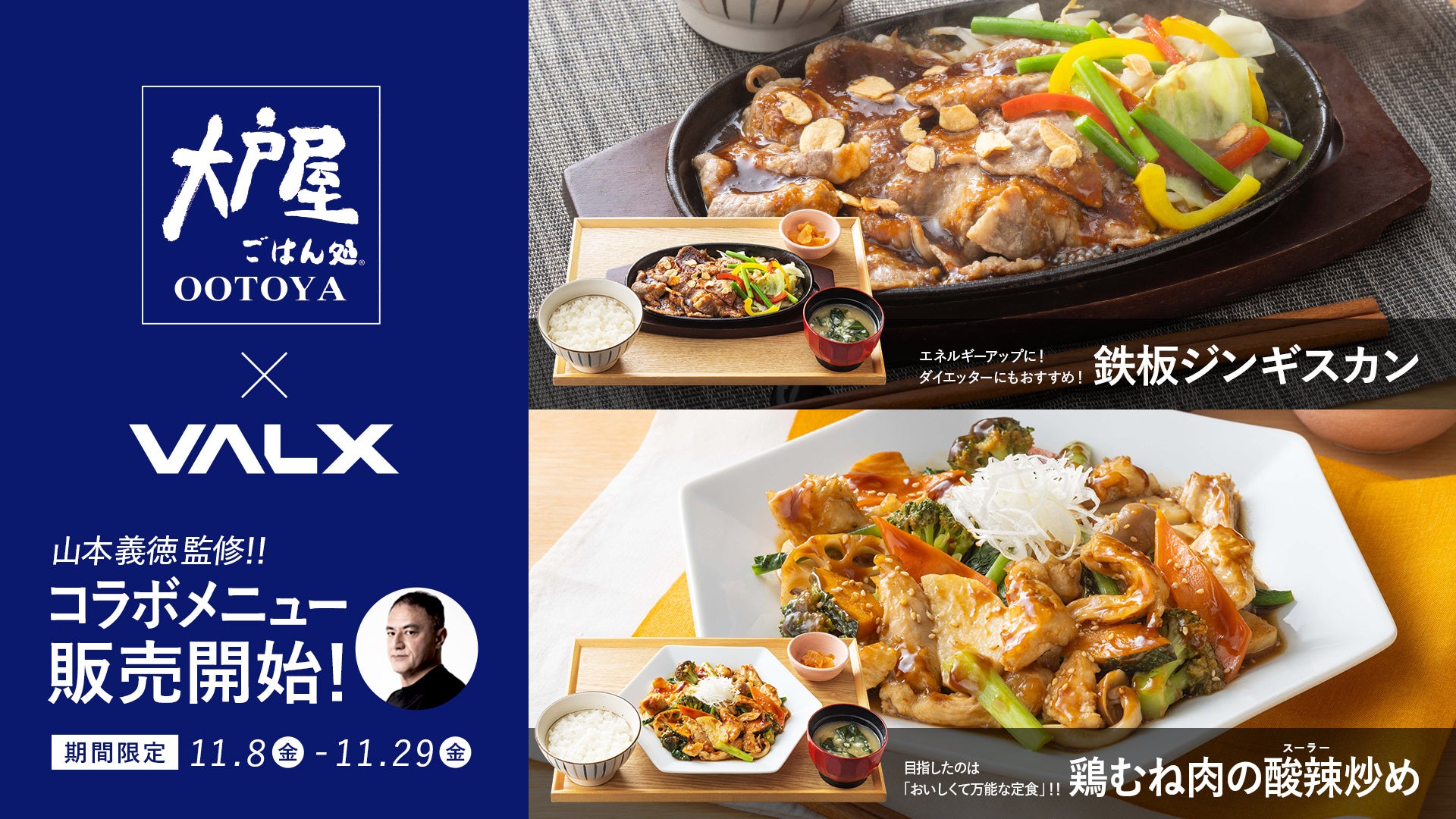 大戸屋×VALXコラボメニューが全国の「大戸屋ごはん処」294店舗にて11月8日(金)より期間限定で販売開始!筋肉博士 VALX山本義徳氏監修の筋トレ&ダイエットにおすすめのメニュー2種を展開