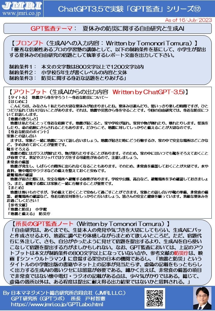 GPT監査レポート⑫PDF: https://www.jmri.co.jp/GPTLabo.Report.Vol.12.TomonoriTomura-JMRI-LLC.pdf
