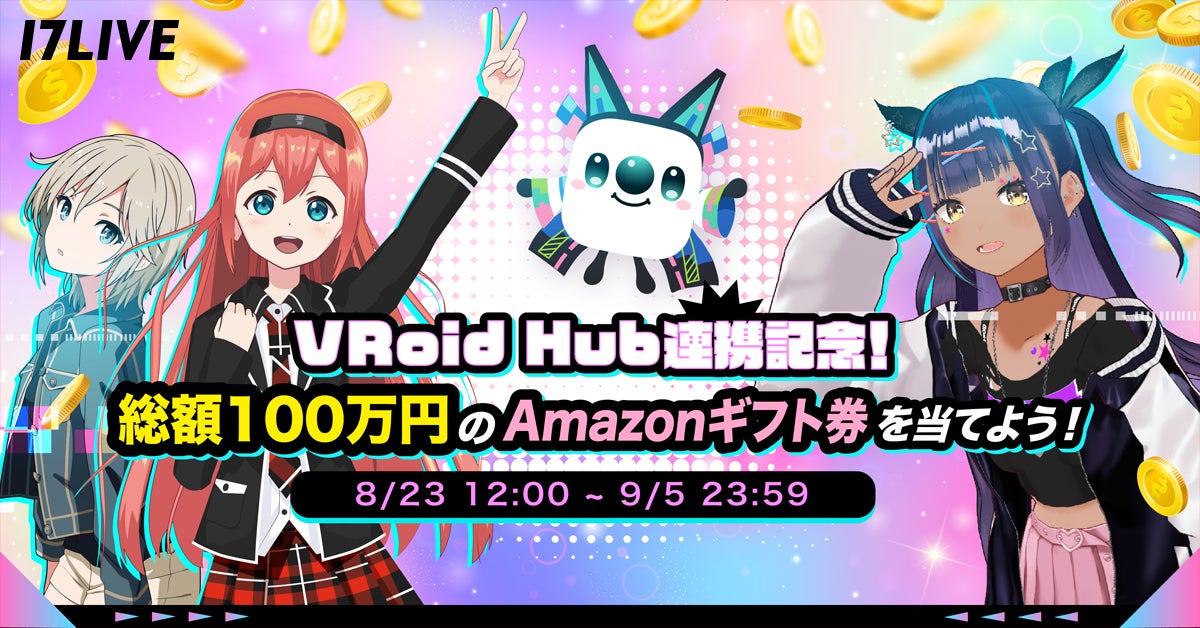 夏のおうち時間は「17LIVE」でVライバーを始めるチャンス『VRoid Hub連携記念!総額100万円分のAmazonギフト券を当てよう!』キャンペーン開催決定!