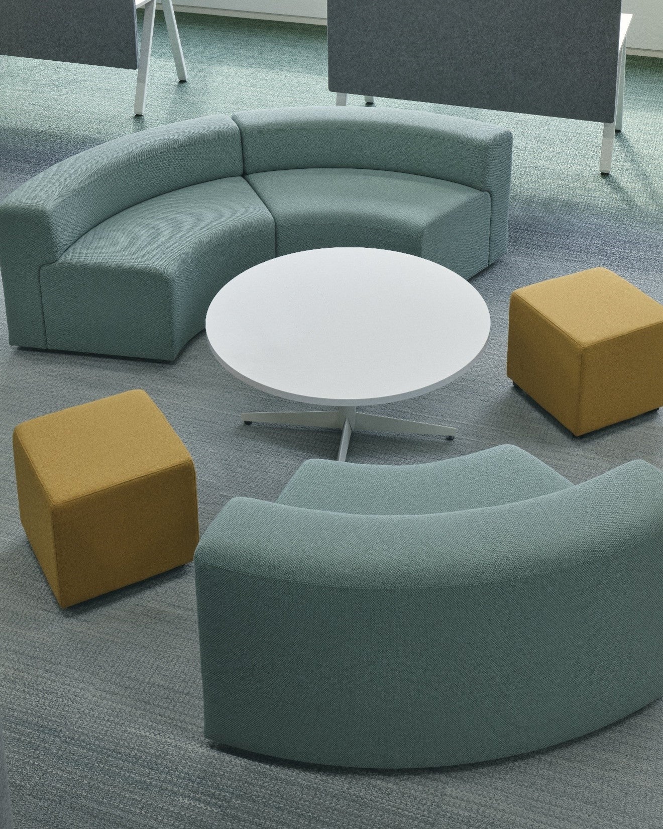 デザインコンセプトは「CROSSOVER」。岡山本社増床プロジェクトの際に策定した2030年に向けたニューノーマルオフィスコンセプトをもとに、チームを基軸に活動によって働く場所を選択できることや、Well-beingの観点などは継承し、今回新たにサステナブルも訴求したオフィスづくりに挑戦しました。居抜きオフィス活用や廃棄衣類のアップサイクル素材活用による廃棄物削減、天然・リサイクル素材の多品目採用など、オフィスづくりから環境配慮に努めている企業であることも発信しています。