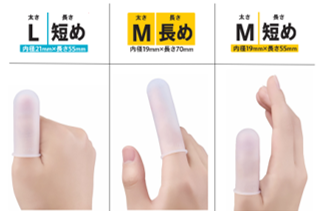 それらの不満点を解決すべく、今回新商品として、ゴム臭くないシリコーンタイプの指サックを販売いたします。