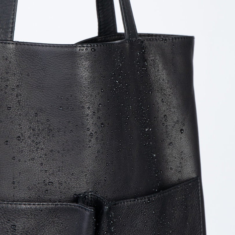 Aランクの牛革を使用しソフトな質感に仕上げたレザーを使用し、MR.OLIVE独自の特殊加工によりフッ素を革の繊維に定着させる事で「吸水率約80%低下」を実現。撥水性が高く、染み汚れになりにくい機能が半永久的に維持されます。裏地は水や汚れに強く、耐久性の高いWWS独自開発素材「ultimex/アルティメックス」を使用。フロントには、ペットボトルが入る大きさのマチ付きポケットが2つ搭載。内装にもファスナー付きポケットがあり、財布など大事なものもしっかり収納可能です。ノートパソコンもしっかり入る大きさで手持ちと肩掛け両方バランスよく使えます。