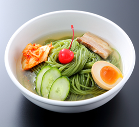 田中 将大選手も試食した、麺に三陸のわかめを練り込んだ「わかめ冷麺(980円)」や