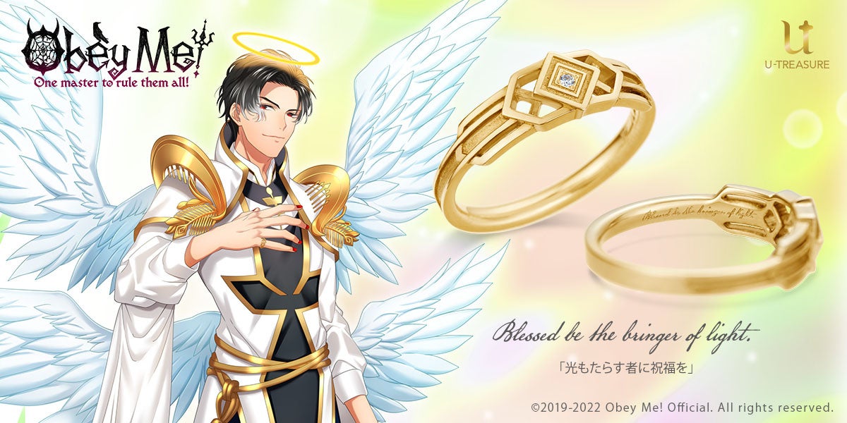 大人のための本格的なキャラクタージュエリーを扱うユートレジャー(東京都豊島区:代表取締役:伊藤 崇史)は、イケメン悪魔調教ゲーム『Obey Me!』に登場する、天使時代のルシファーが身に着けていた「光の指環」を11月1日(火)~11月28日(月)の期間限定で予約受付を行ないます。このたびの新作は、かつてのルシファーが身に着け、数奇な運命を経て主人公が譲り受けることになるリング(指輪)を描き起こし、商品化しました。中央に宝石を留めた透かしのデザインで、内側には「Blessed be the bringer of light.(光もたらす者に祝福を)」の文字を刻みました。ユートレジャーコンセプトストア池袋、ユートレジャーオンラインショップにて取り扱います。