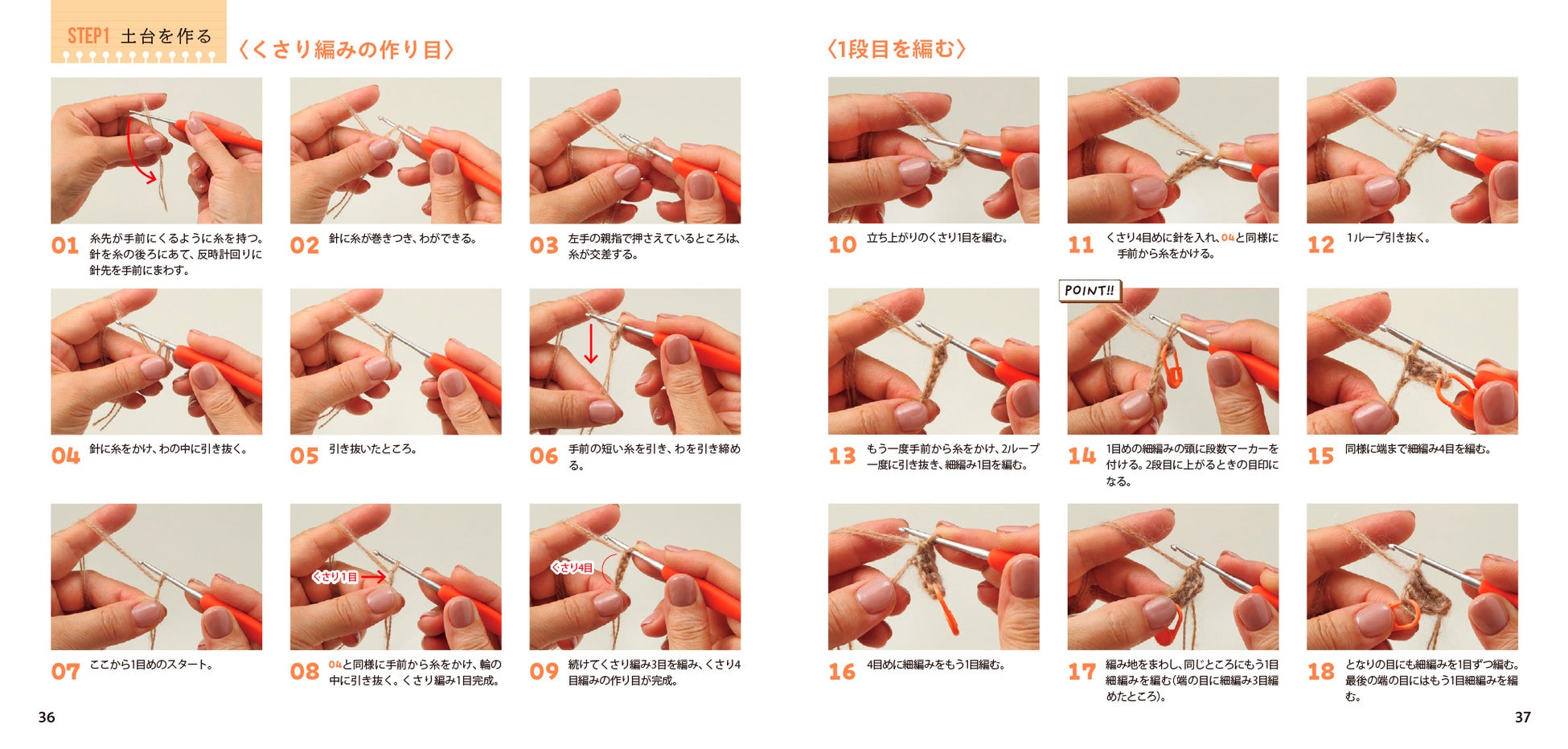 基本のプロセスは作り手目線で、手順を追って、ていねいに解説します。作品と編み図はほぼ実物大を掲載。本を見ながらバランスを確認できるよう、わかりやすく工夫しています。