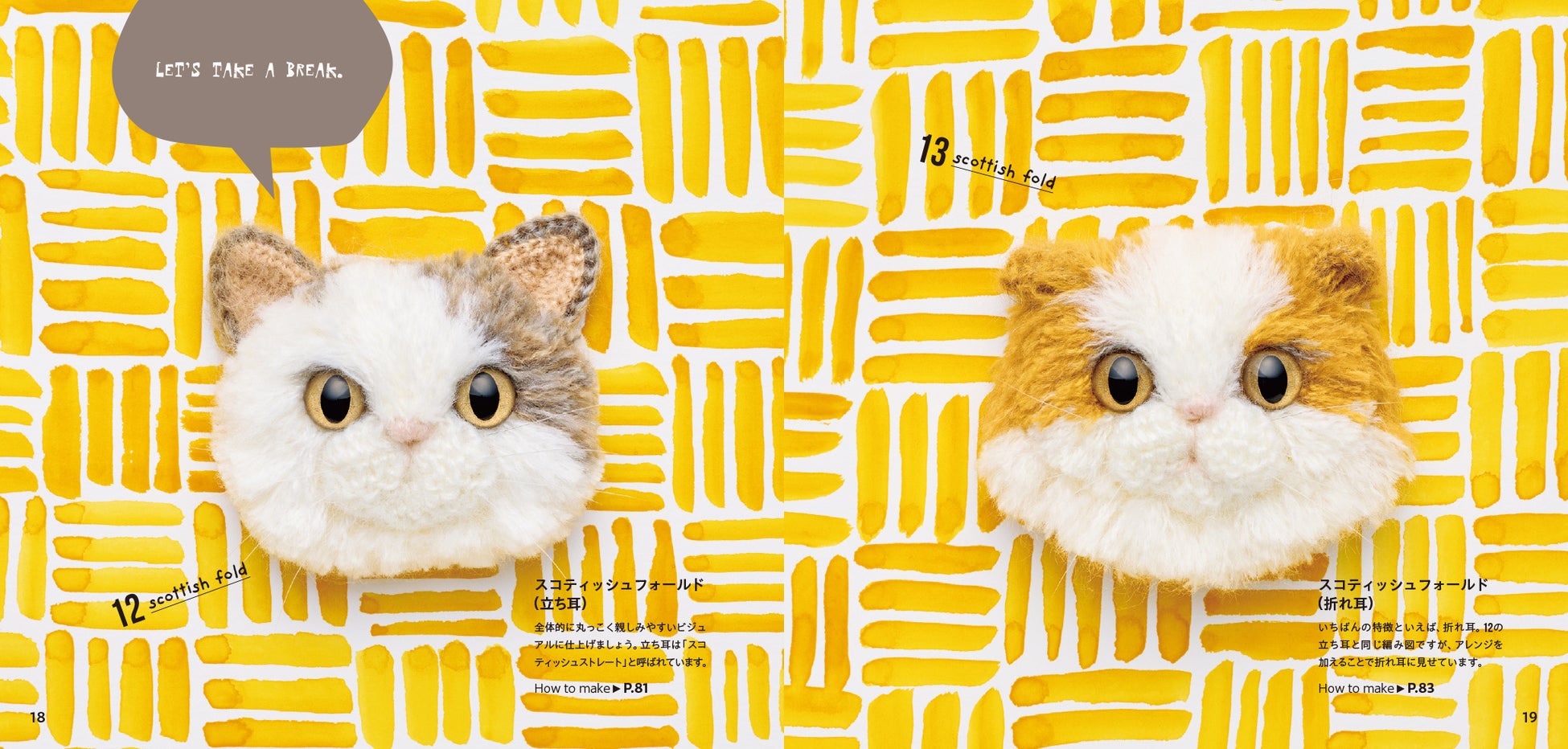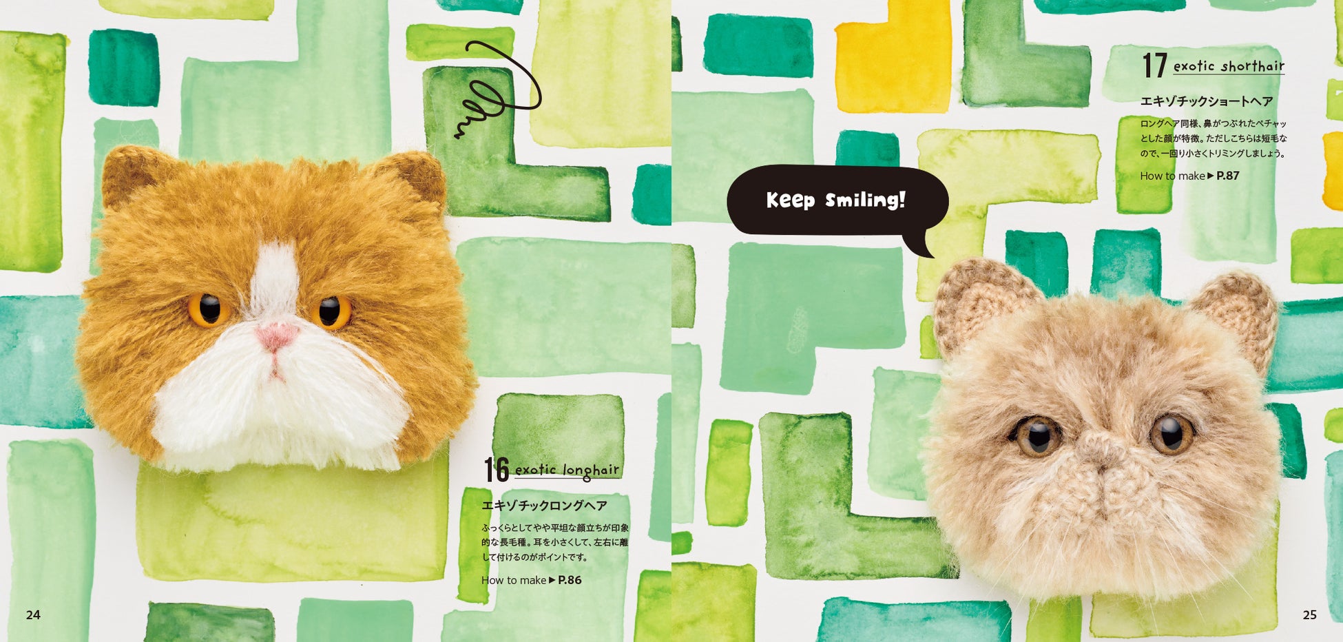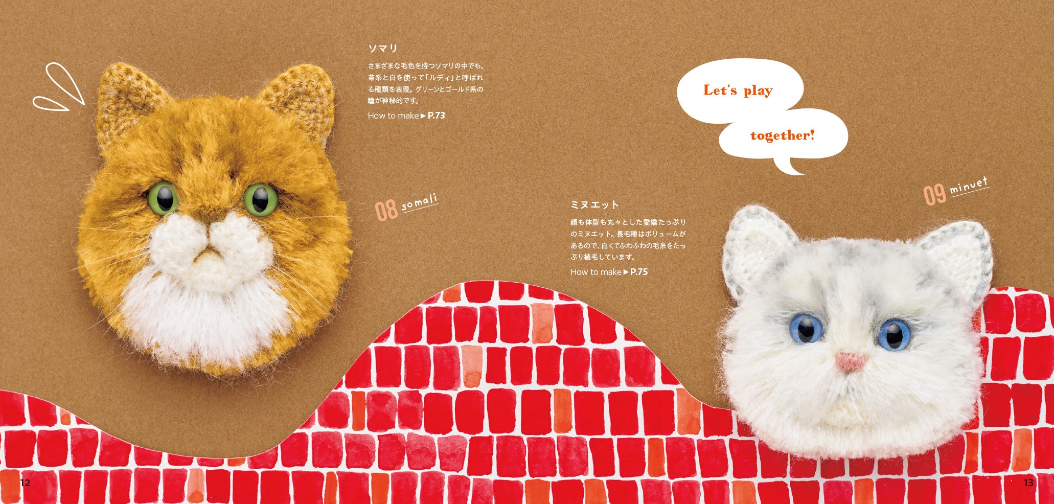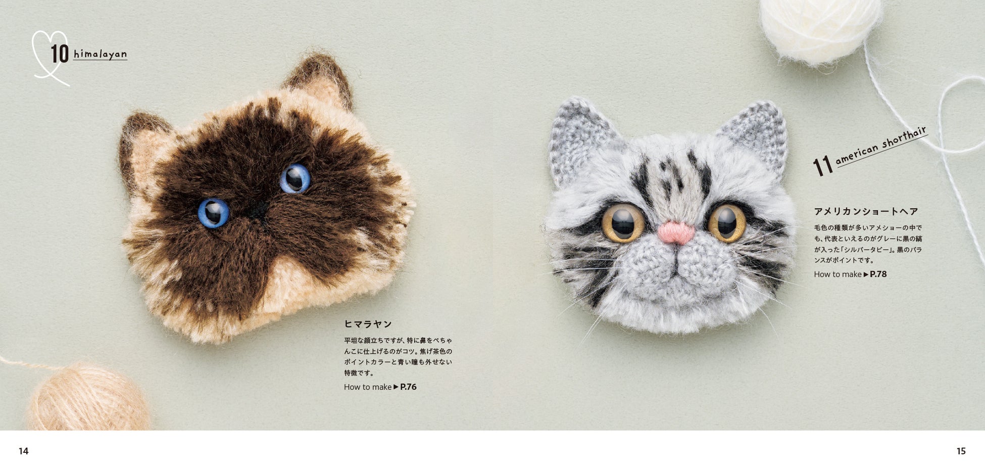リアルなあみぐるみで人気の著者、あみぐるみ作家・眞道美恵子さんが提案するフォトジェニックなにゃんこのあみぐるみブローチ。