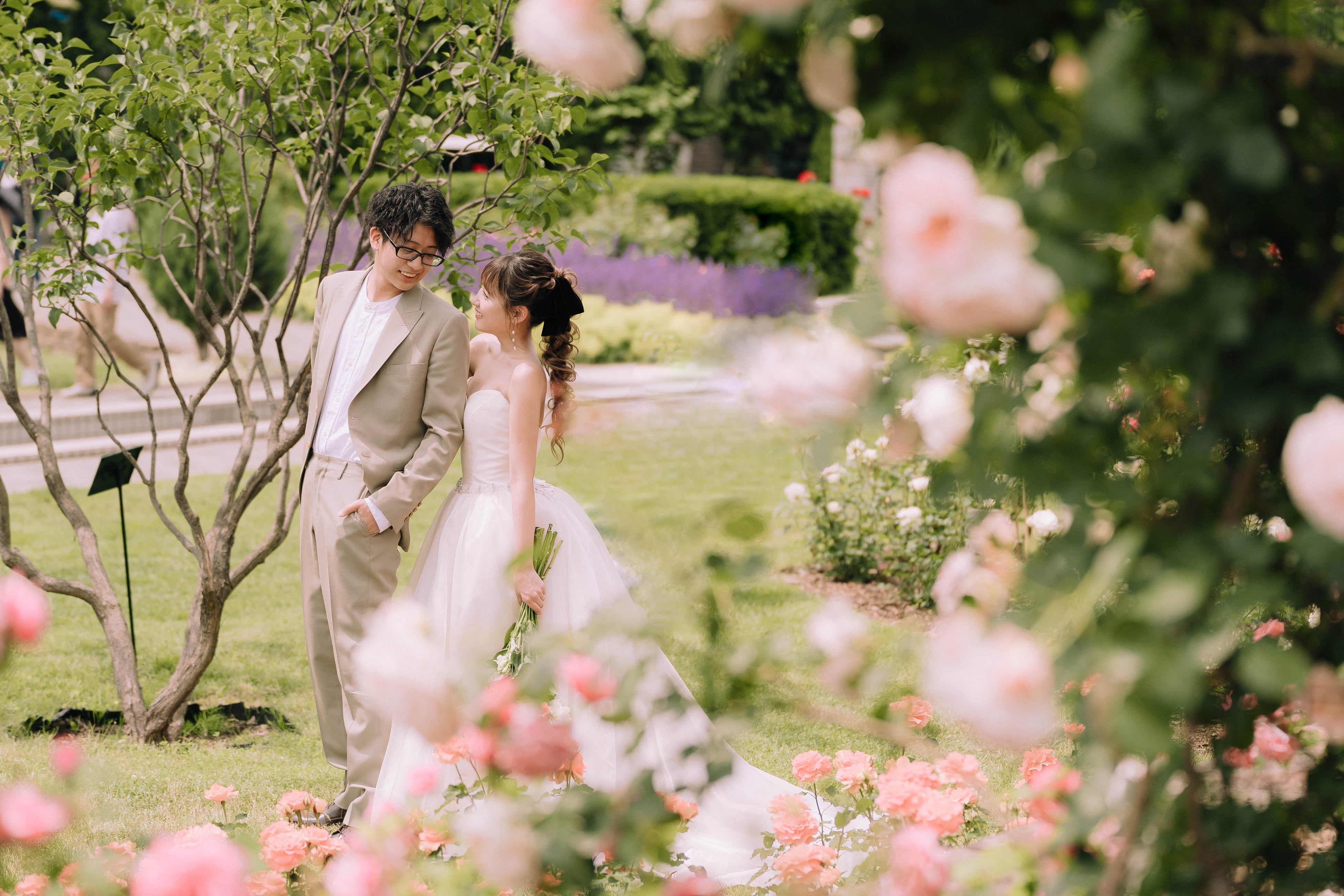 札幌市資料館の前のバラ園が広がるスポットでまるで絵本の中のような可愛らしい撮影を。