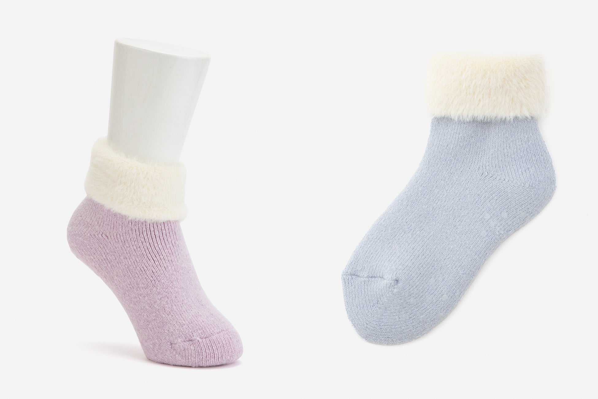 「ケユカのモコモコ靴下は断トツで肌触りが良いです!すべすべでとっても温かいです。特にこのラベンダーカラーが可愛くてお気に入りです」