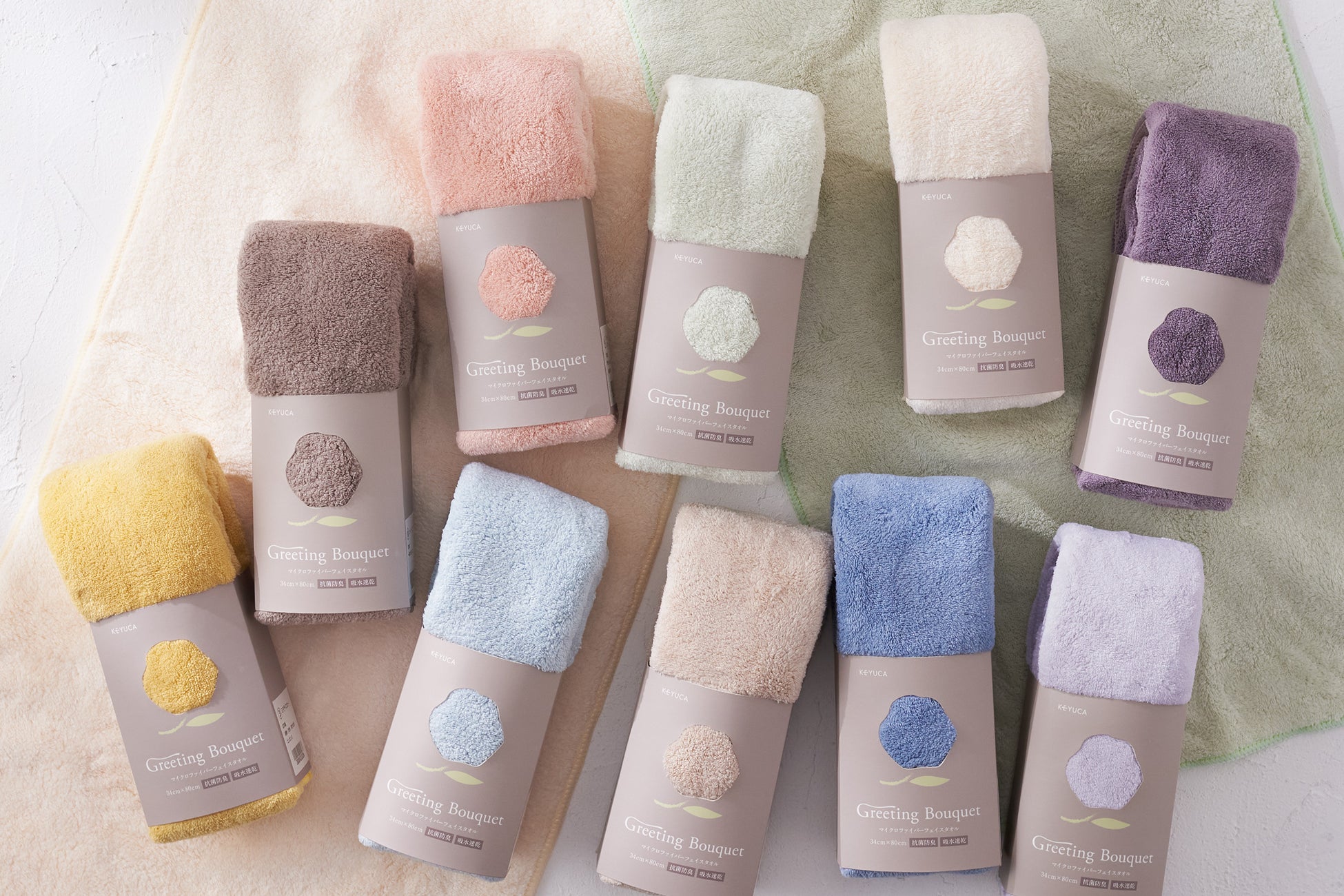 「吸水力と速乾性があり、彩りも鮮やかで、花言葉も入っているのでギフトに最適です」