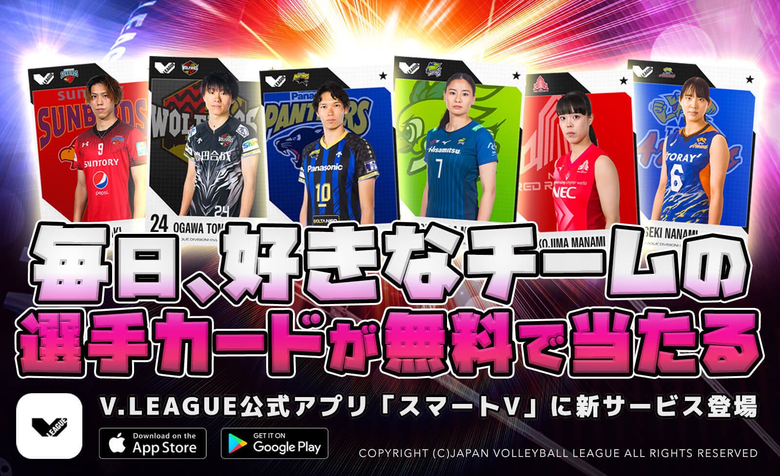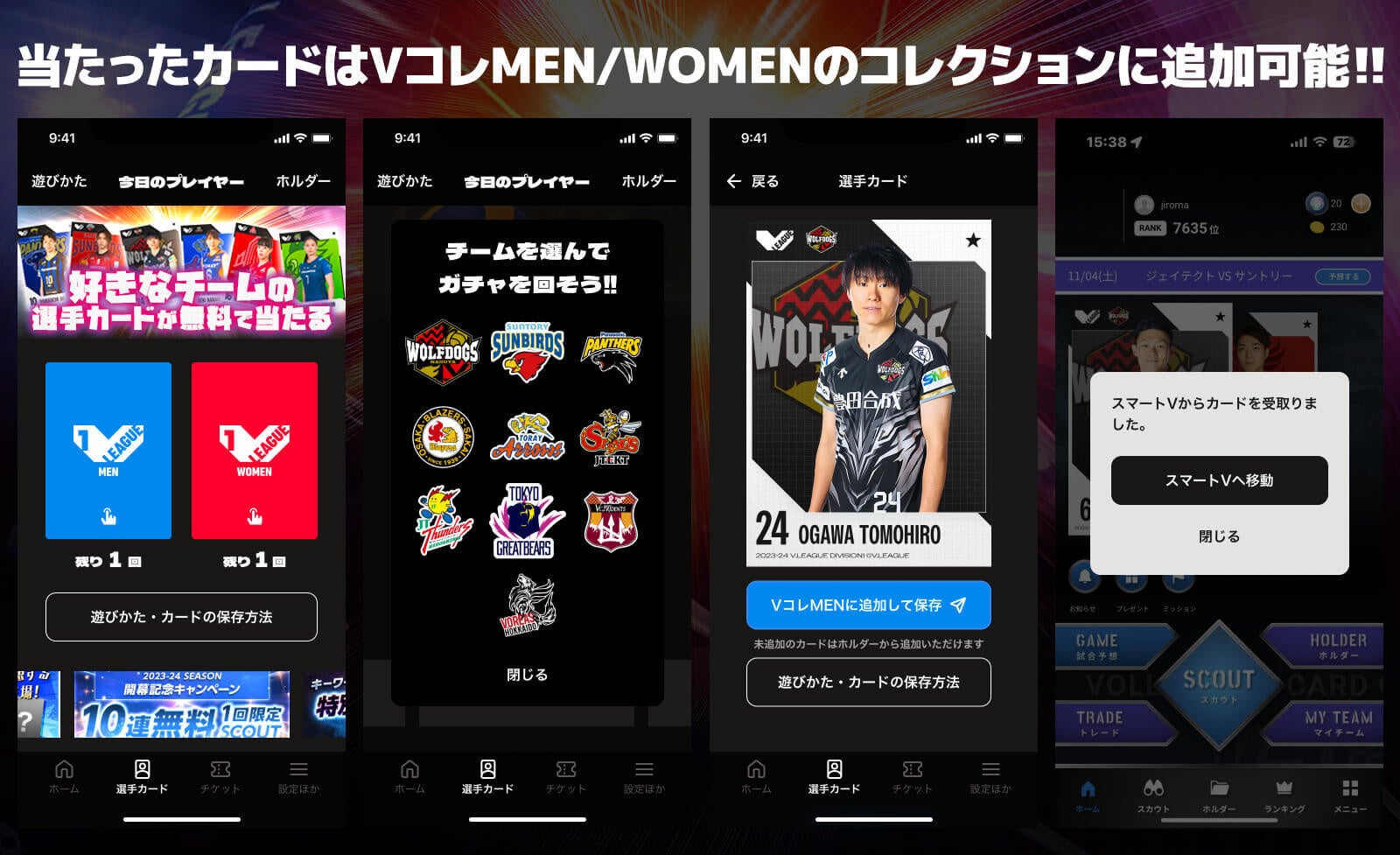 Vリーグ公式アプリ「スマートV」に、毎日無料で好きなチームの選手カードが引ける新機能が登場!