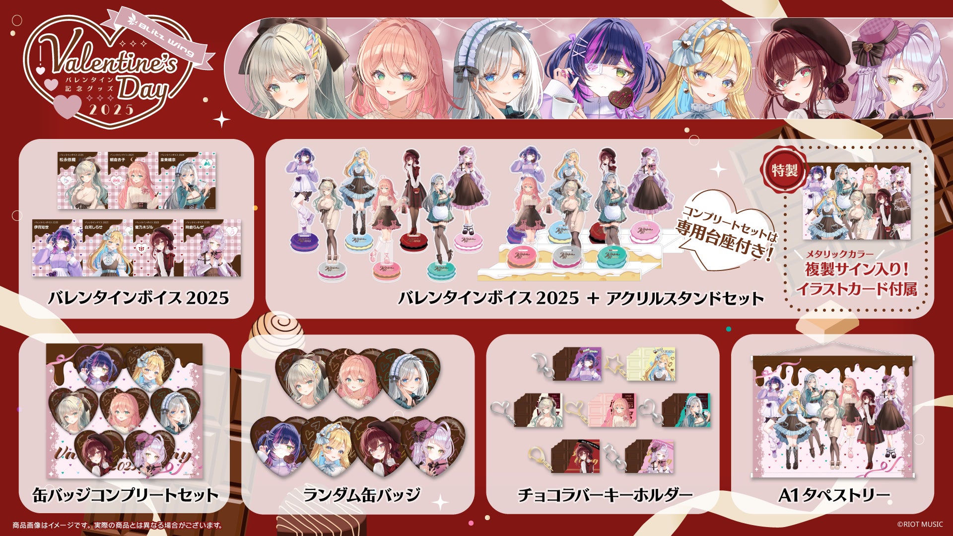 株式会社RIOT MUSIC(本社:東京都港区、代表取締役:舩橋 純、株式会社Brave group100%子会社)は、VSingerレーベル「Blitz Wing」に所属するアーティストのバレンタインをテーマにした新作グッズ『Blitz Wing Valentine's Day 2025』を本日2月10日(月)18時より販売開始いたしました。