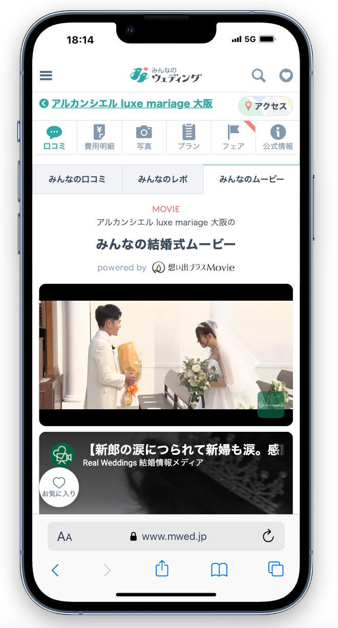 掲載例:『アルカンシエル luxe mariage 大阪』の「みんなの結婚式ムービー」ページ