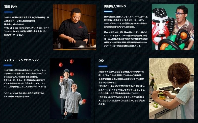 また、バルーンアート界のパイオニアで、北米大会でアジア人初の優勝経験のある風船職人SHINO氏が、『DRAGON BALL』に登場するキャラクターをバルーンで表現するほか、国内のジャグリングフェスティバルで優勝経験のある異色コンビパフォーマーであるジャグラー・シンクロニシティの2人が、3,000個のルービックキューブを使用して、本イベントのキービジュアルを制作。さらにキャラ弁作家のりゆ氏が、『DRAGON BALL』のキャラ弁作りに挑戦いたします!