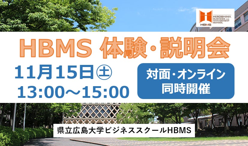HBMS (県立広島大学大学院経営管理研究科)は、2年間でMBA(経営修士)の学位が取得できる中国地方唯一の「働きながら学ぶ社会人のためのビジネススクール」です。