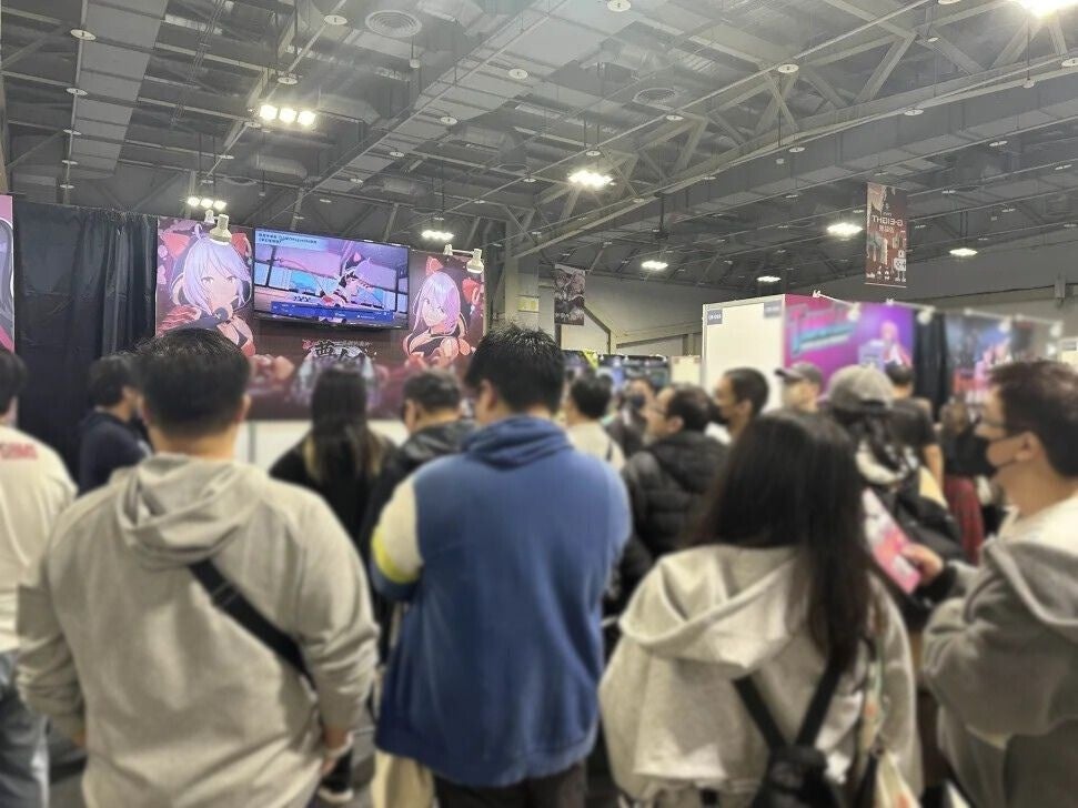 『夢幻桜楼閣』のブースでは、キャラクターの可愛らしさや爽快感のある戦闘が好評を博し、プレイ後にはポジティブな感想が多く寄せられました。ゲームのクリアを目指して熱中するプレイヤーとその様子を見入る来場者が集まり、ブース全体は白熱した雰囲気となっていました。