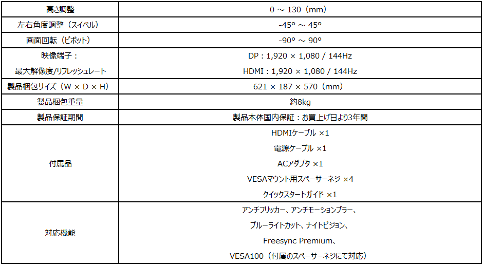 鮮やかな色合いを表現可能でゲームはもちろん、動画視聴にもお勧めです。