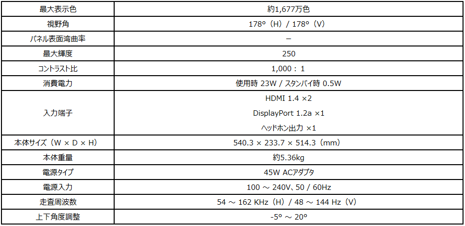 マルチモニター環境などで斜めから見る際も色の変化を最小限に抑えることが出来ます。
