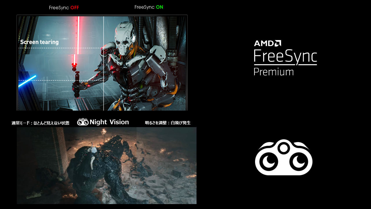 FPSゲームなど激しい動きのゲームでも滑らかな映像を残像感無く表示出来ます。