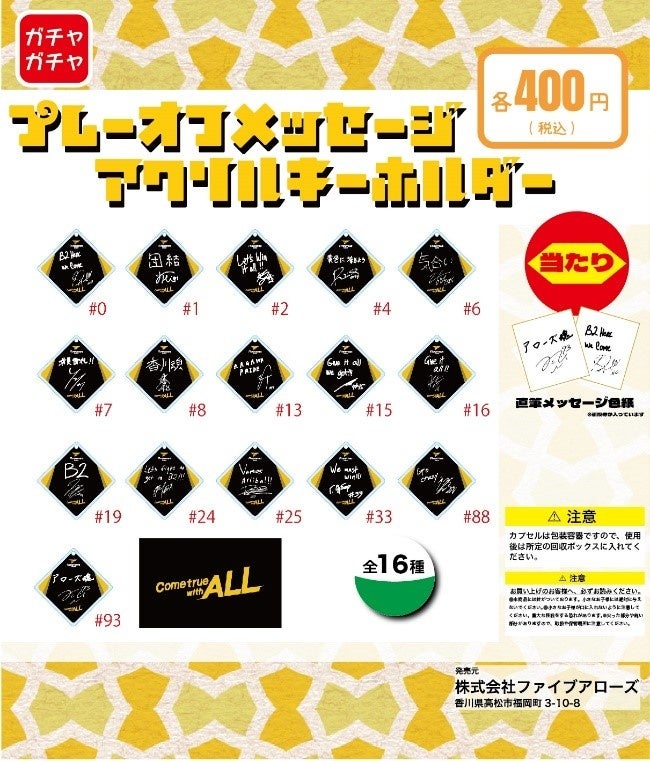 全16種類の選手メッセージが用意されており、どのキーホルダーが出るかはお楽しみ。