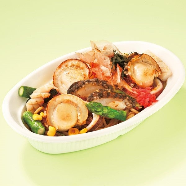 海の幸とアスパラコーンどっさり旭川しょうゆバター焼きそば