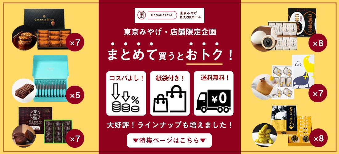 お土産はオンラインで。送料無料のお得なセットや東京駅で人気のお土産を豊富にラインナップ!「東京みやげKIOSKモールHANAGATAYA」Yahoo!ショッピング店2023年11月14日正午オープン!
