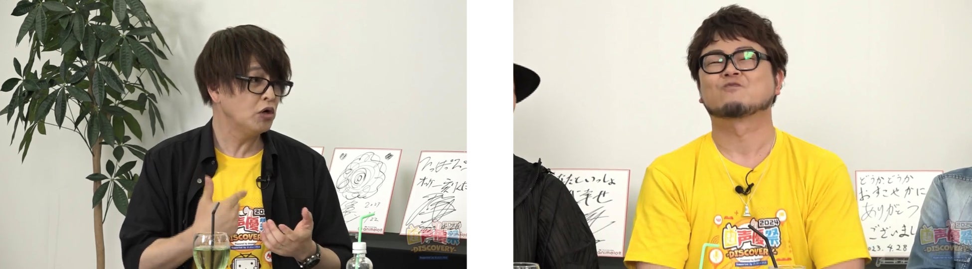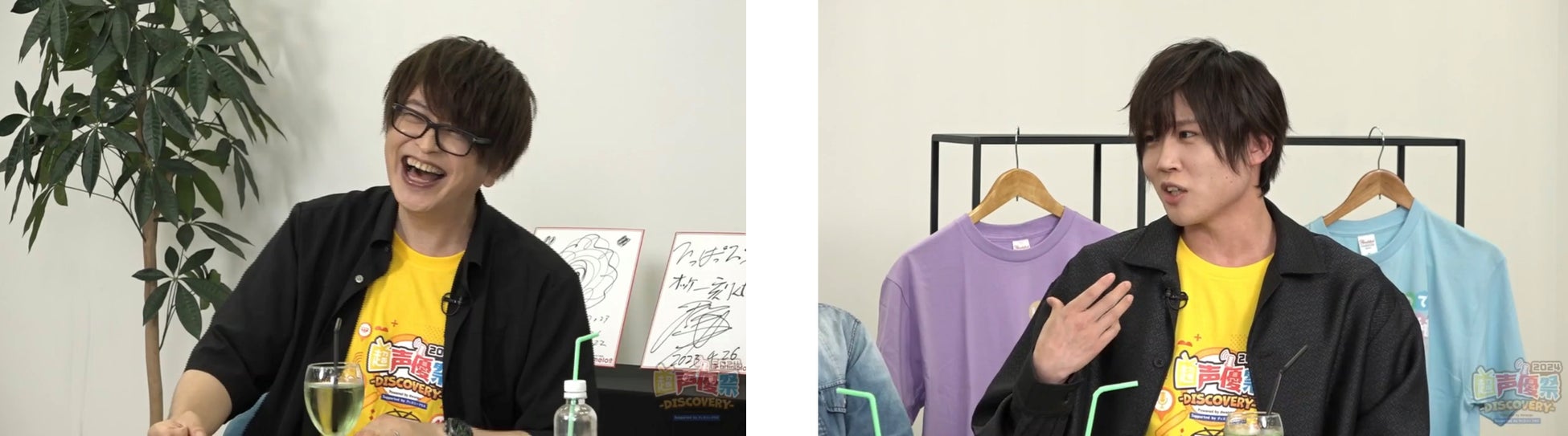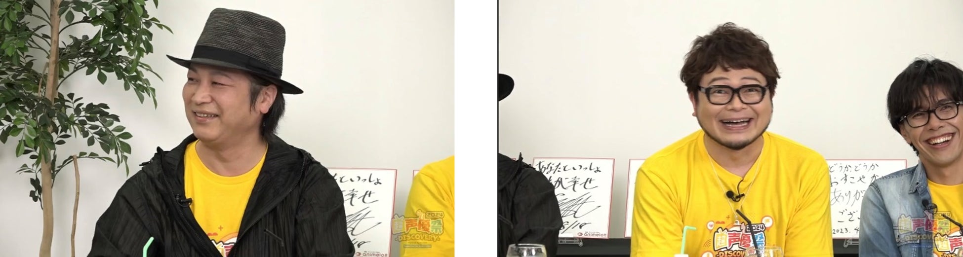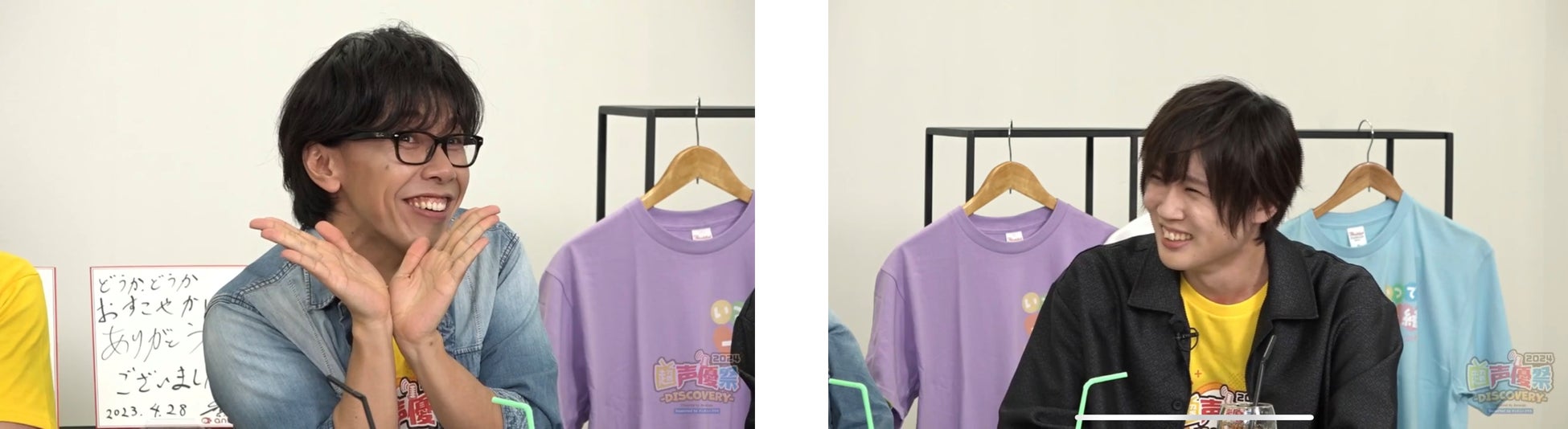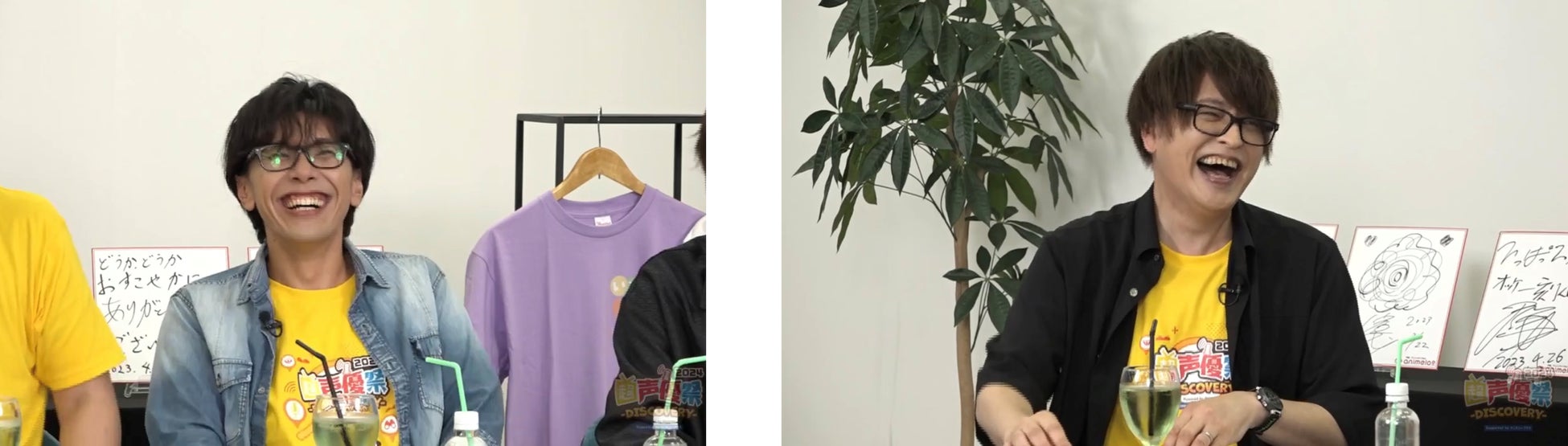 続いて興津は「みなさん、はじめまして!浮かれています!」と元気よく発声したあと、「興津和幸です。よろしくお願いします」と一転してムーディーに自己紹介。緑川は「鳥海くんとはまた種類を変えてきたね!パワフルと見せかけてちゃんと強弱と声音を使い分けて、僕も好きな感じのスタイル」とべた褒めです。