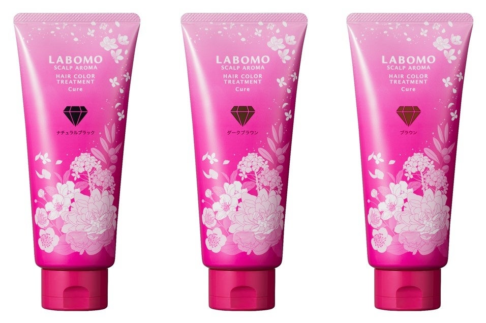 シリーズ8代目となる『ラボモ スカルプアロマ ヘアカラートリートメント キュア』はシリーズ史上最多数となる33種類※1の美容保湿成分※2を配合。新規染料を新たに配合することで染毛力をさらにアップ※4させ、より深みのある色味を実現します。また、髪が風になびくような軽やかなパッケージデザインが心躍るようなバスタイムを演出します。