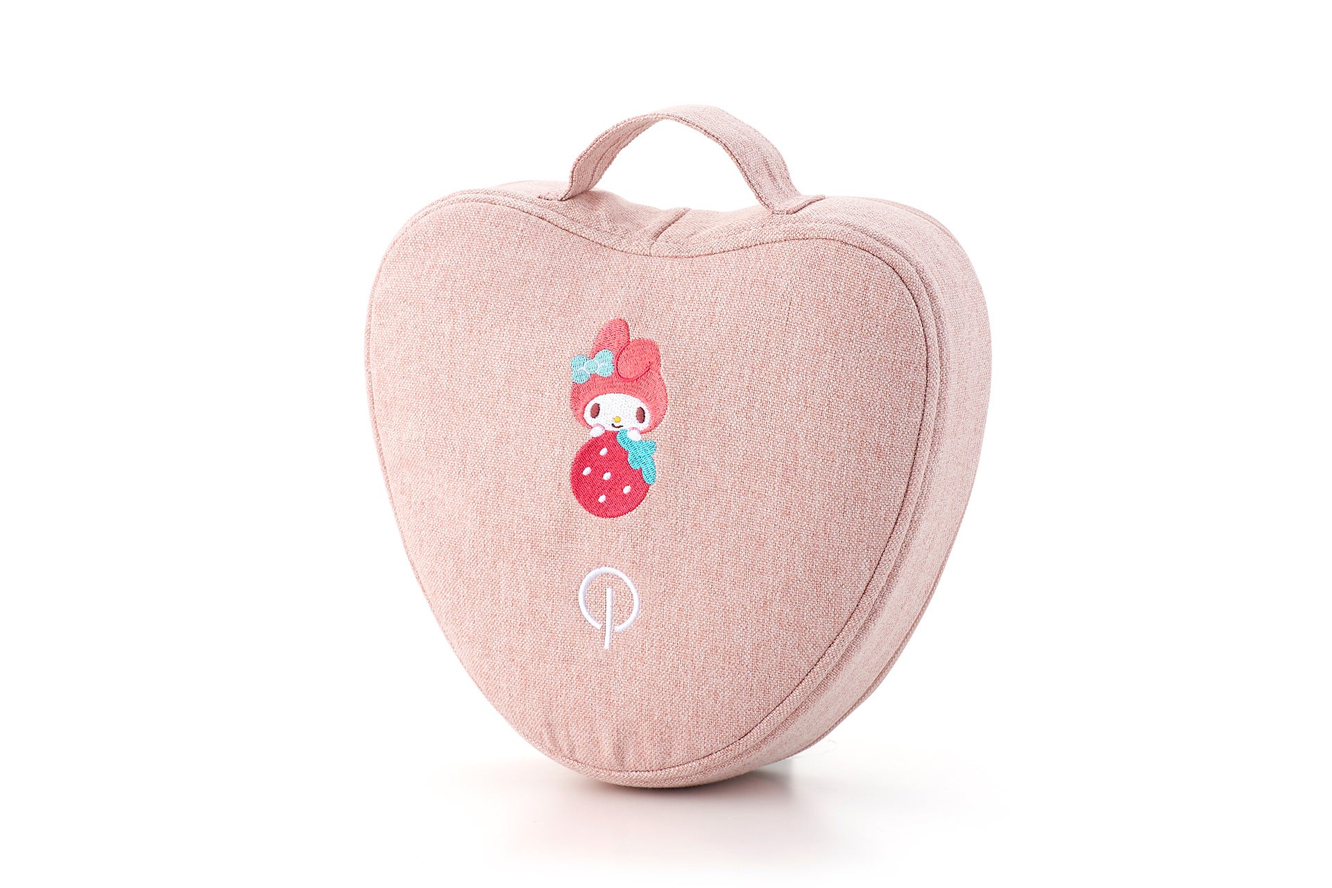 マイメロディとイチゴのモチーフを、やさしい風合いの刺繍であしらったクッション。