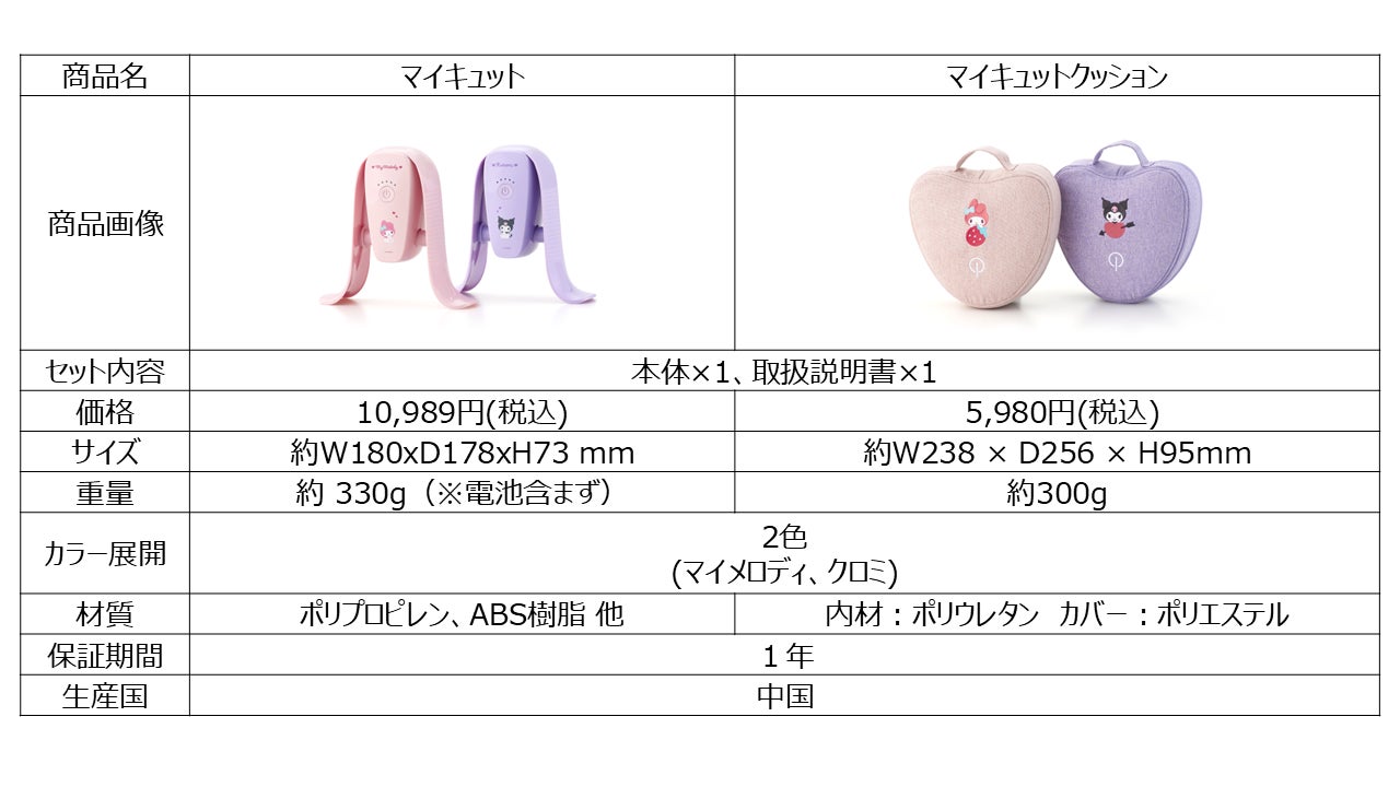 ショップジャパンを展開する株式会社オークローンマーケティング(本社:名古屋市東区、代表取締役会長兼社長:ロバート・W・ローチ)は、フィットネス・ケアブランド「マイキュット」より、株式会社サンリオ(本社:東京都品川区)の人気キャラクター「マイメロディ」、「クロミ」のコラボレーションモデルを、2026年2月2日(月)より販売開始いたします。