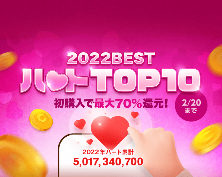 2022年累計ハートランキングTOP10対象作品 初購入で購入金額の70%相当還元イベント詳細