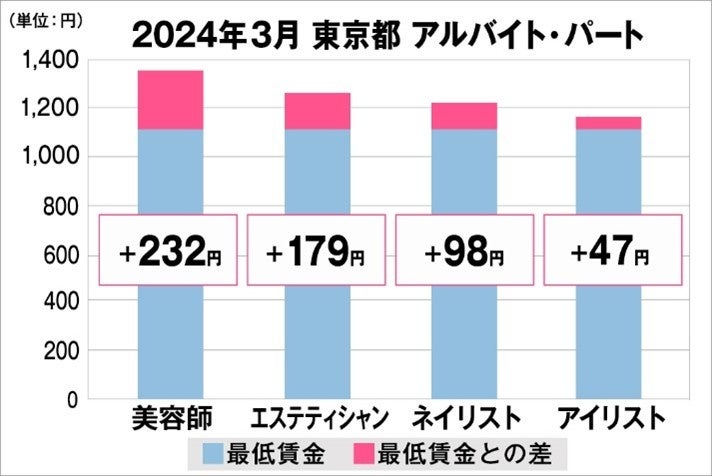 美プロ調べ「2024年3月 最低賃金から見る美容業界の給料調査」~東京版~
