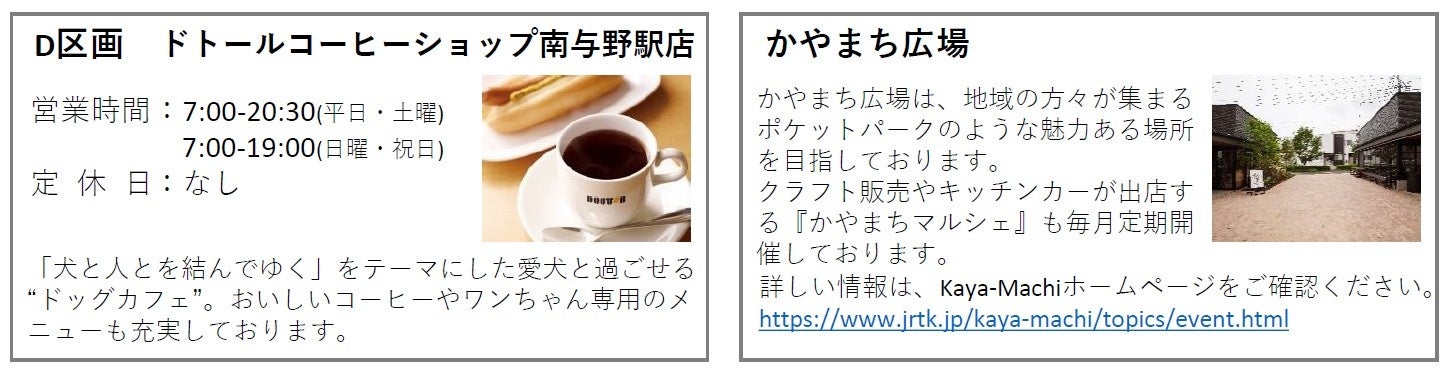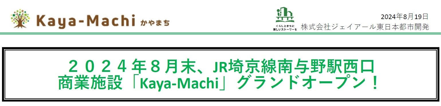 株式会社ジェイアール東日本都市開発は埼京線の沿線価値向上に取り組んでおります。このたび、南与野駅西口で地域密着の商業施設「Kaya-Machi(かやまち)」第一期開発店舗が全店開業することとなりました。