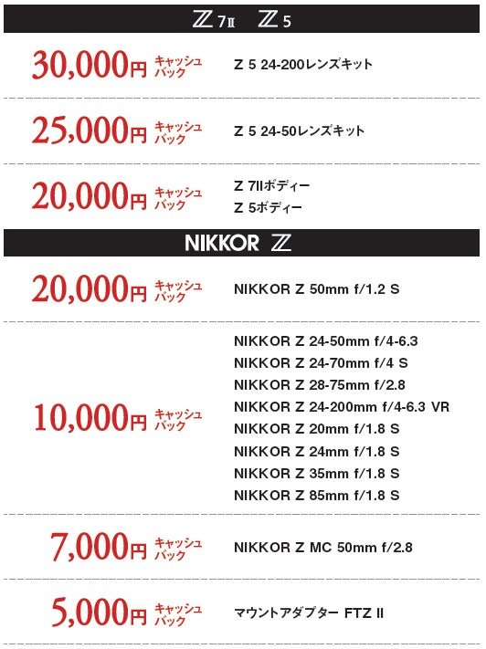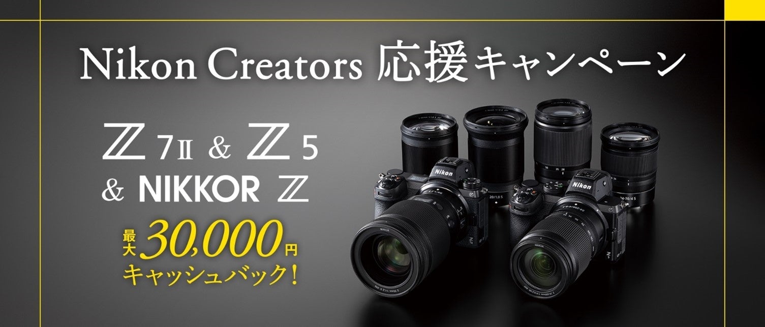 「Z 7II」「Z 5」ボディーをはじめNIKKOR Z レンズなど対象製品を購入した応募者全員に最大30,000円をキャッシュバック