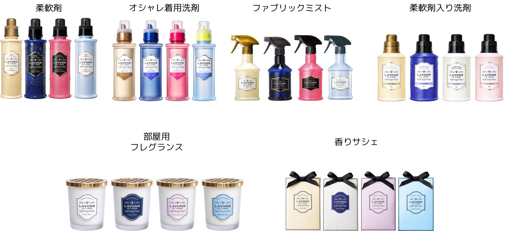 2013年9月の発売以降、柔軟剤、洗剤、ファブリックミスト、芳香剤を展開しており、お気に入りの香りを様々なシーンで楽しむことができます。