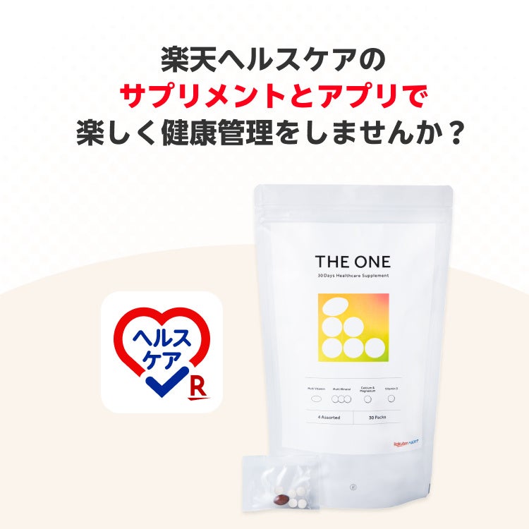 楽天グループ株式会社(以下「楽天」)が運営する、ポイントを貯めながらおトクに健康管理ができるスマートフォンアプリ「楽天ヘルスケア」は、アプリの食事データに基づいて、一般的に不足しがちなビタミンなどを含む20種類の栄養素を一包で摂取できるサプリメントの新商品「THE ONE」を監修したことをお知らせします。本商品は、インターネット・ショッピングモール「楽天市場」で楽天が運営する日用品販売の直営店舗「楽天24」にて、本日より取り扱いを開始しています。