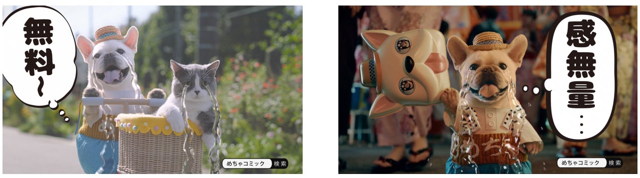 株式会社アムタス(東京都港区 代表取締役社長 山下正樹) は、電子コミック配信サービス「めちゃコミック(めちゃコミ)」において、2014年5月度より、「めちゃ犬」というキャラクターを使用してテレビCMを放映しております。2020年12月からは有吉弘行さんにも参加いただき、より多くの方に「めちゃコミック」を知っていただくきっかけを作って参りました。そして2022年に入り、有吉弘行さんの「無料~」「感無量~」のナレーションに合わせて、無料で読める作品と涙を流すめちゃ犬たちの姿を交互に映していくCMを展開し、無料作品の豊富さを伝えています。