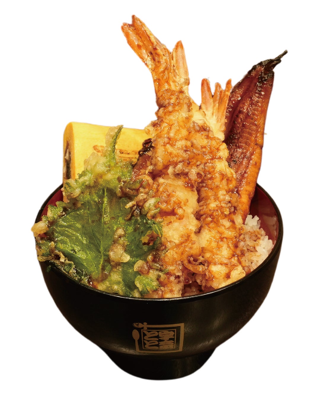 天を突くような大海老天──インパクトある見た目は、まさに「“食べる前からおいしい”丼」。