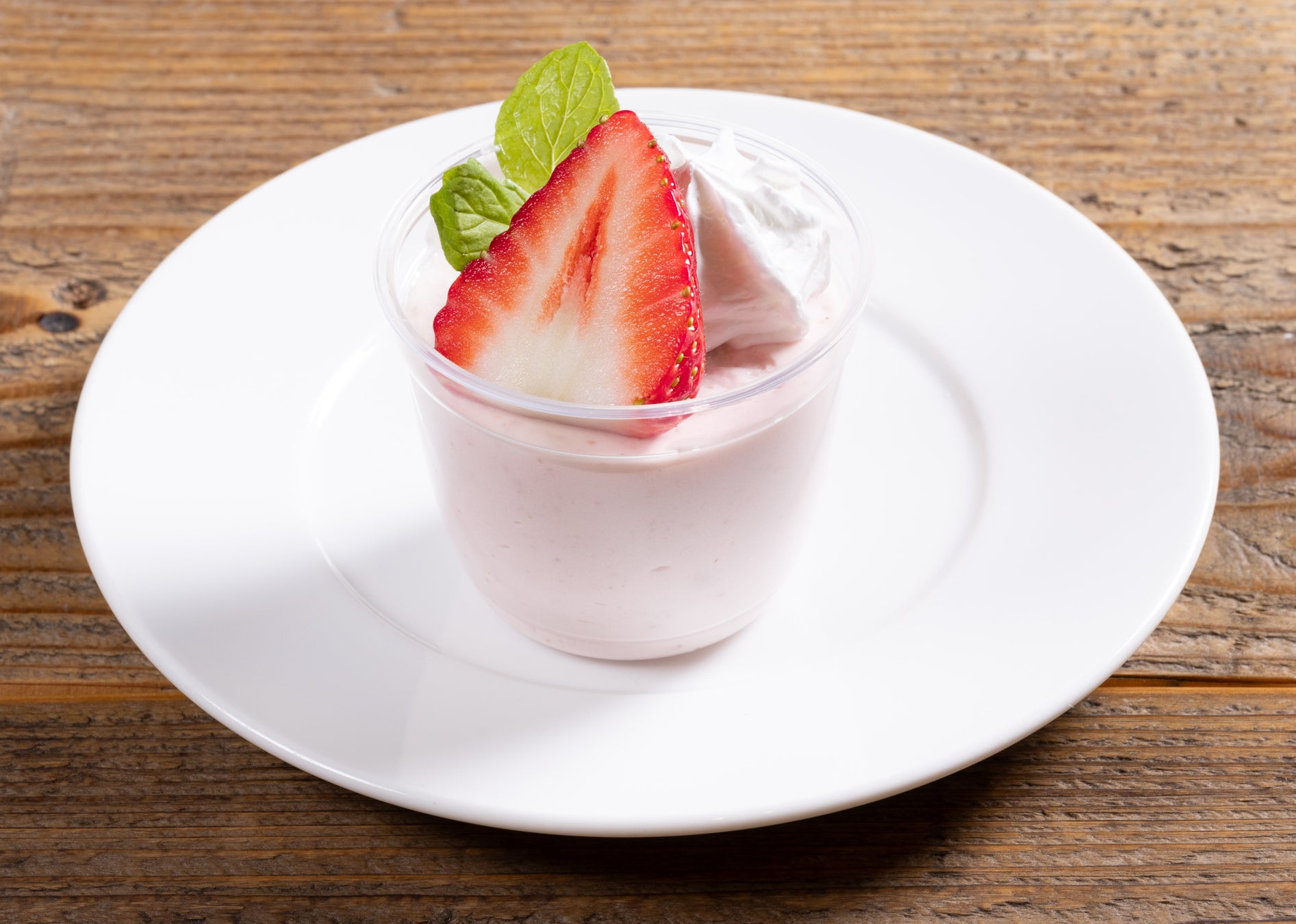 晴苺のおいしさをギュッと詰め込んだなめらか食感のババロア。懐かしさを感じる、やさしい味わいが特徴です。上に乗っている生クリームを、フレッシュな果肉とともに召し上がれ。