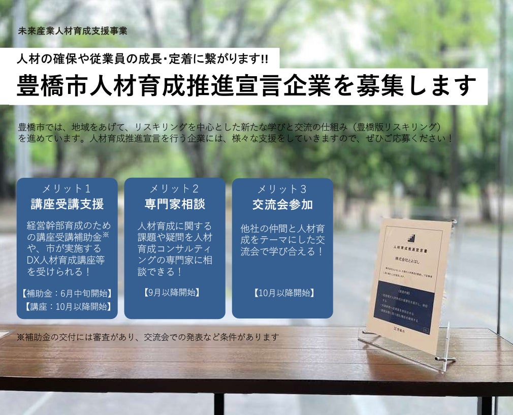 豊橋版リスキリング! ⼈材育成に積極的な企業を愛知県豊橋市が募集中