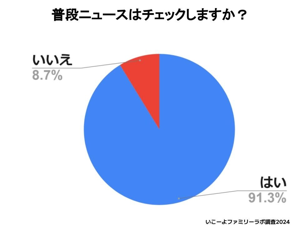 「普段ニュースはチェックしますか?」という質問に対して約91.3%が「はい」と答えており、子育て世帯においてニュースのチェックは日常的な習慣の1つとなっています。