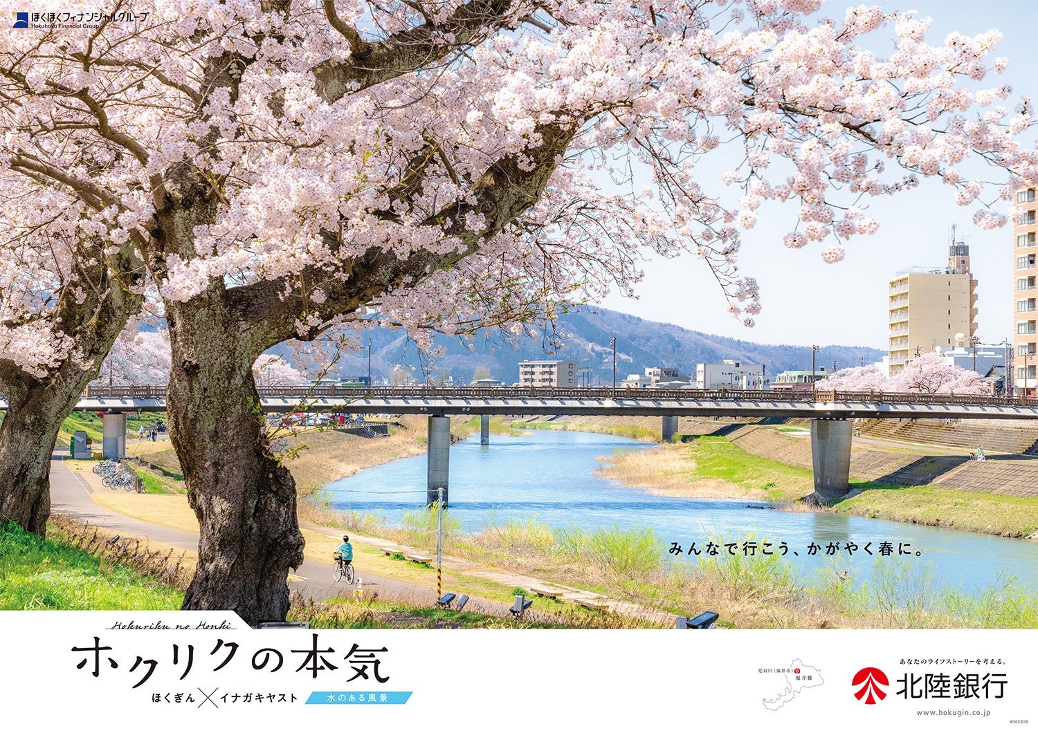 福井県で撮影した「新たに気づく地域のすごさ=本気」「水のある風景」を、店頭ポスターや北陸銀行ホームページ、SNS等で発信。