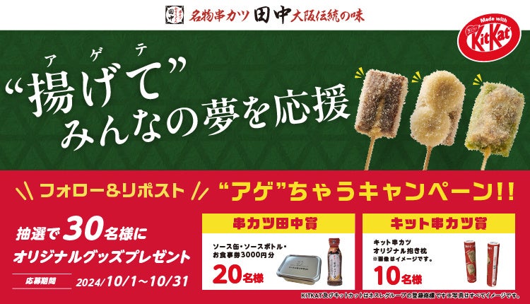 株式会社串カツ田中ホールディングス(本社:東京都品川区東五反田、代表取締役社長:坂本 壽男)は、昨年大好評をいただいたネスレ日本株式会社(本社:兵庫県神戸市中央区御幸通、代表取締役社長兼CEO:深谷龍彦)の人気商品「キットカット」とのコラボ企画を、「揚げて、復カツ!キット串カツ!」と題し、更にパワーアップして今年も実施することが決定いたしました。