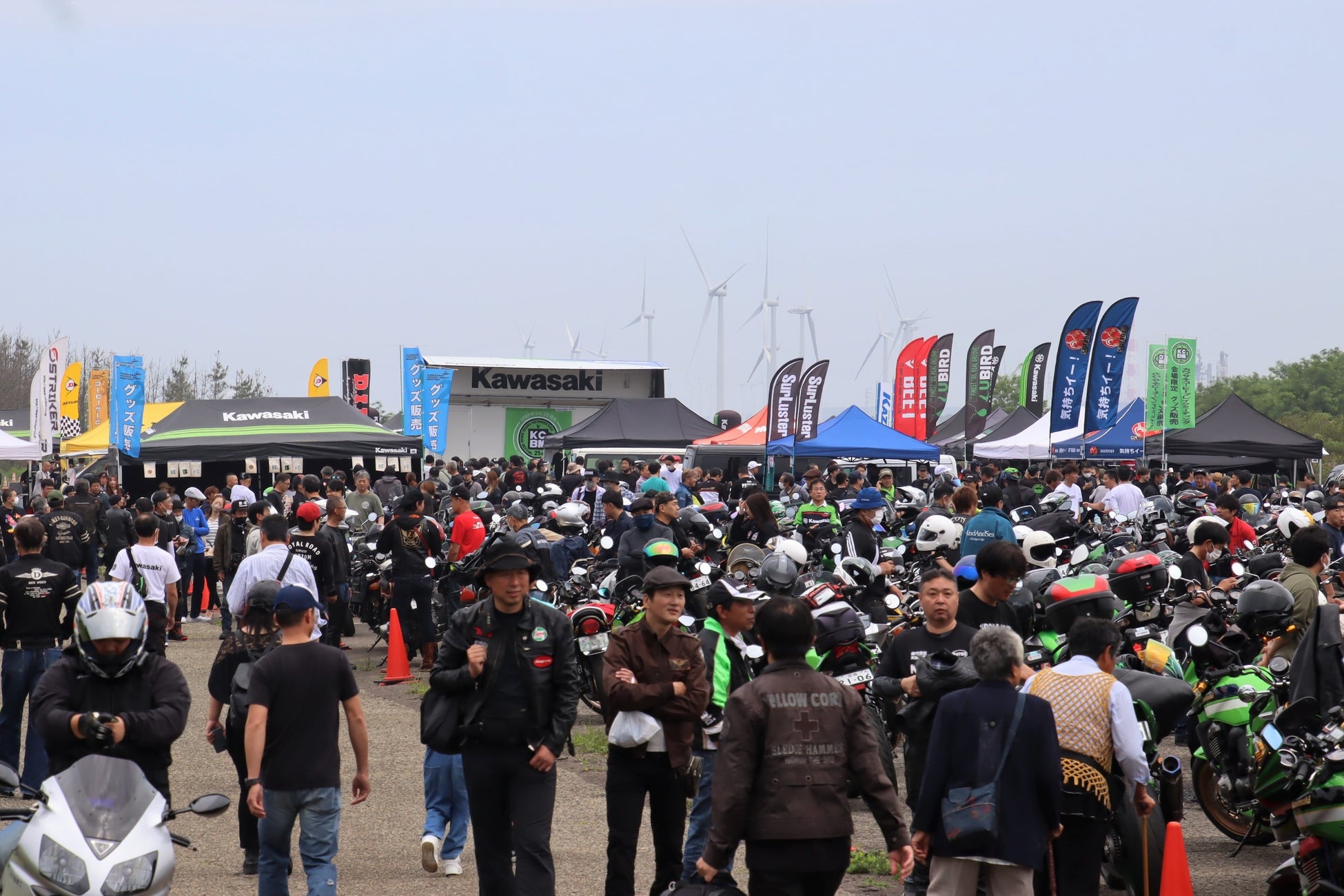 旧秋田空港跡地(秋田市新屋町)で開催した、2023年第3弾のカワサキコーヒーブレイクミーティング(以下、KCBM)となる「KCBM in 秋田」は開場一時間前に雨が上がる曇り空となりましたが、イベント終了頃には晴れた天気となりました。会場には1,932名(過去最多は2022年10月のKCBM in 佐賀:4,569名)のカワサキファンにご来場いただきました。