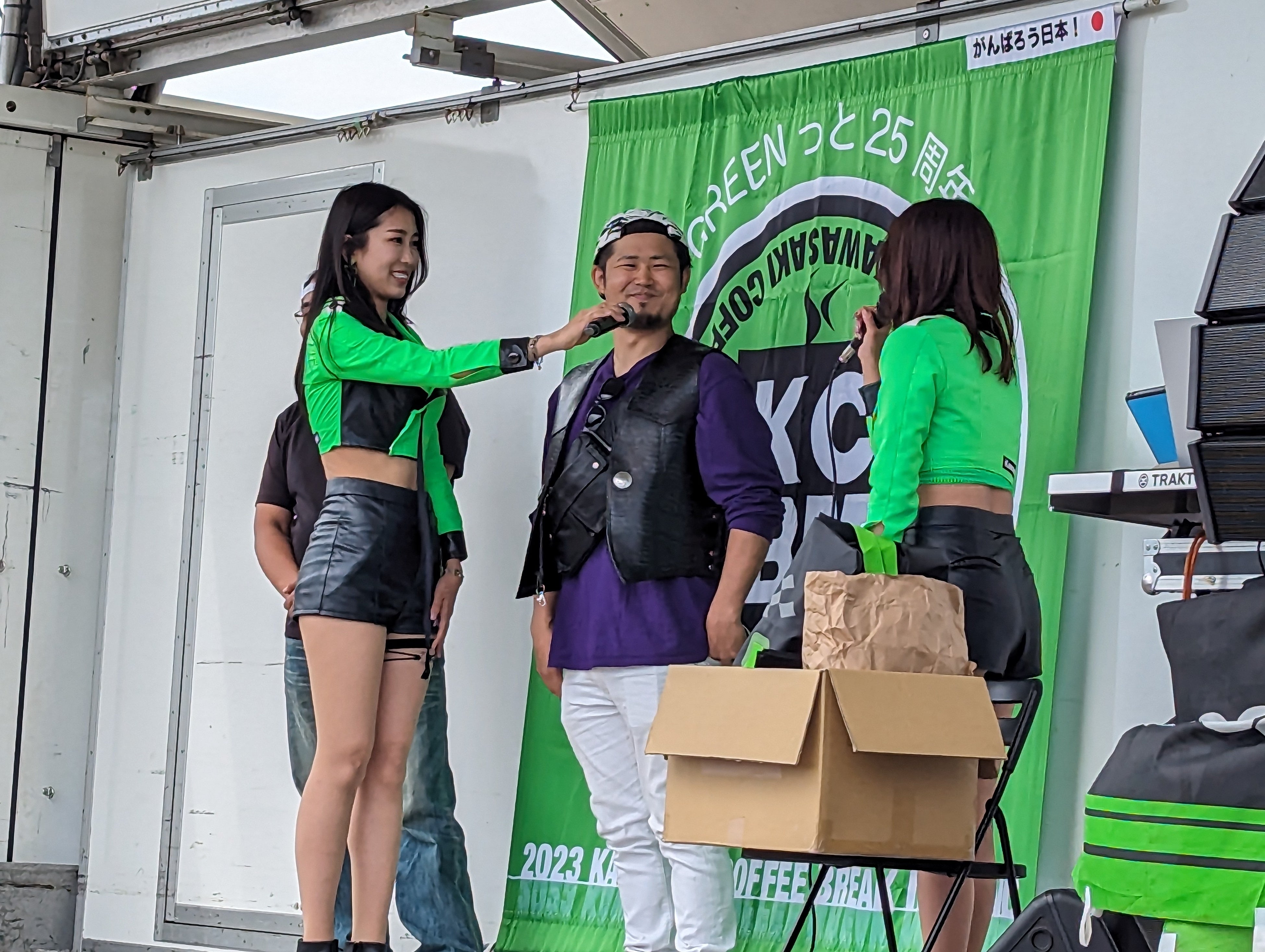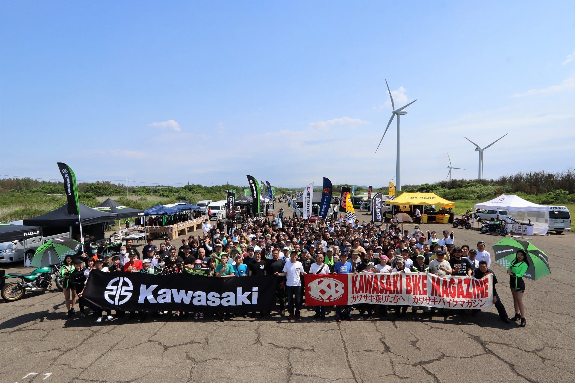 最新のモデルから往年の名車まで様々なカワサキモーターサイクルが整列した会場内では、見て回るだけでも楽しく、またイベントステージではKAZEギャルによるトークショーやじゃんけん大会を実施。