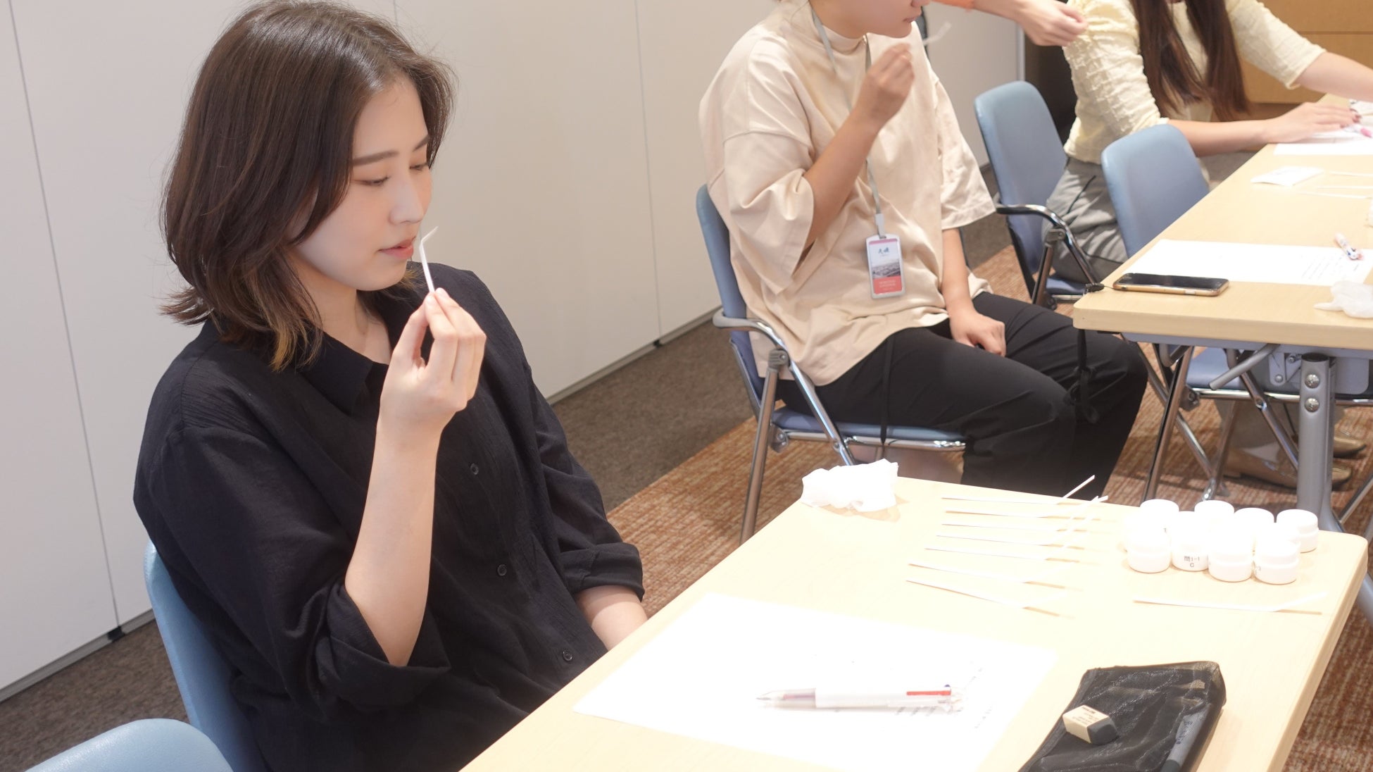 当日は、僅かな香りの違いを嗅ぎ分ける比較試験や、香料に混ぜ合わせた成分を判別する試験、香水の名前を当てる香水弁別など、さまざまな問題が出題されました。